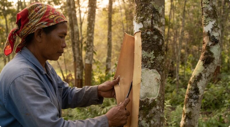 - 乾燥: 剥ぎ取った内樹皮を数日間乾燥させます。乾燥する過程で、皮は自然にくるくると丸まり、おなじみの筒状(シナモンスティック)になります。